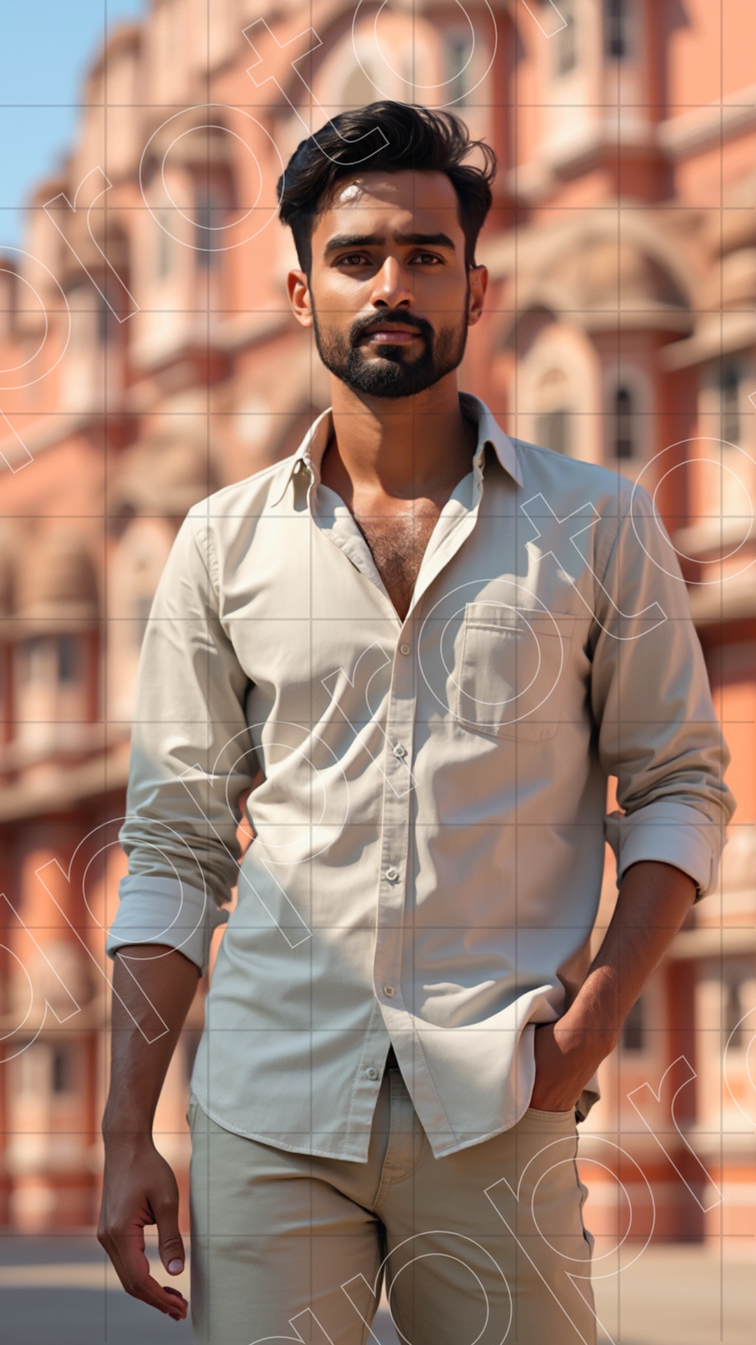 delightful image of a couple strolling hand in hand along a pristine beach, basking in the serene atmosphere of the shoreline. Both are dressed in relaxed and casual outfits that complement the tropical vibes of the location. The turquoise water, white sand, and lush green palm trees in the background create a picturesque setting, perfect for themes of romance, travel, and leisure.